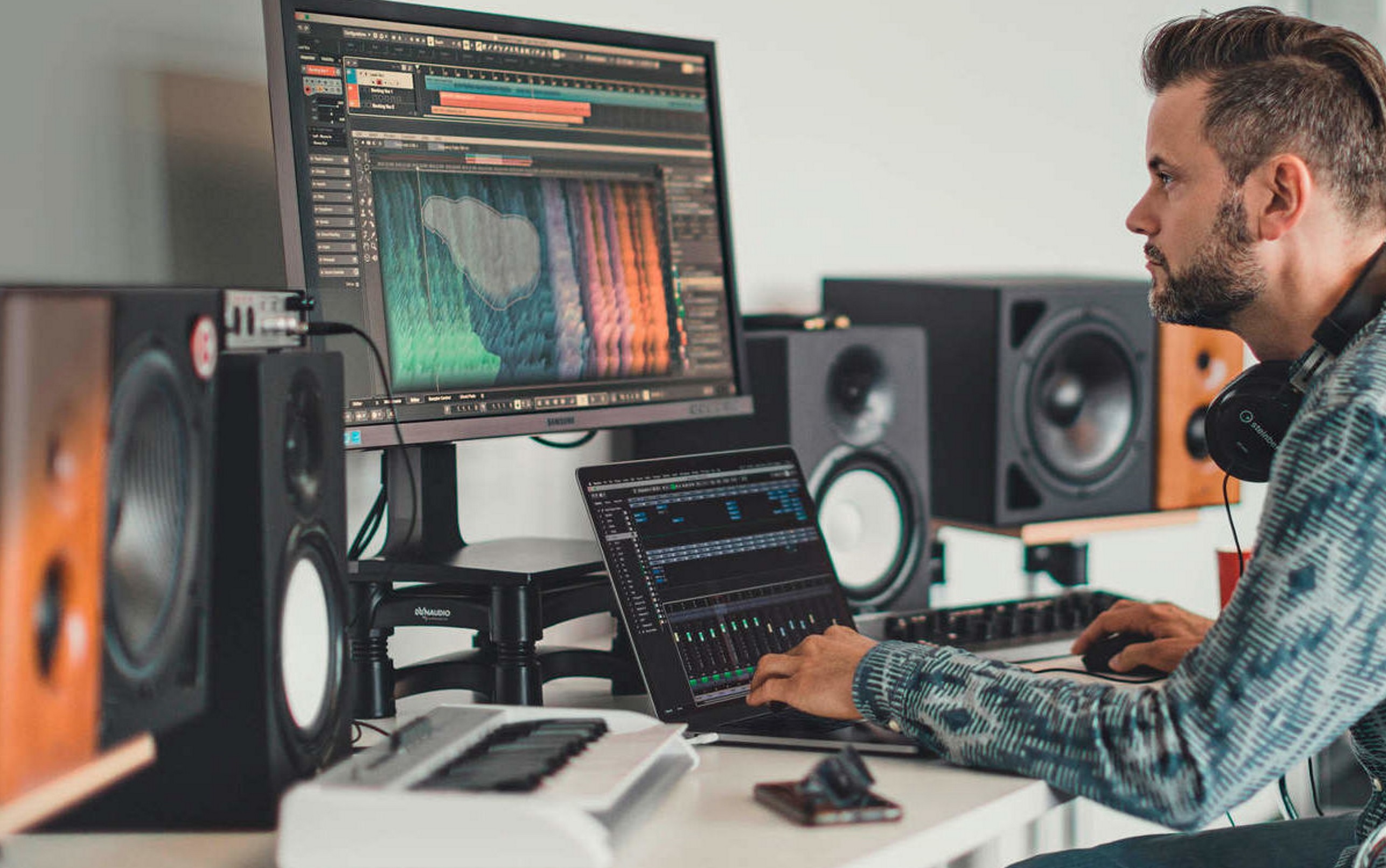 Чем еще можно подтвердить слова о том, что рекламно-производственная компания «Фасад Медиа Групп» оказывает услуги по записи аудиороликов качественно и профессионально? На этот вопрос можно ответить так: у нас самое передовое оборудование и техника производства, записи аудиороликов. В подтверждение слов необходимо указать, что наши специалисты при производстве аудиоконтента используют следующую аппаратуру: