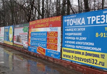 Существуют различные виды рекламы на заборах в Кыштыме:
