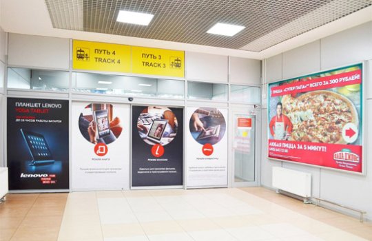 Виды рекламы в поездах Аэроэкспресс в Кыштыме