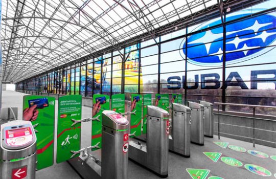 Реклама на арках входной группы в Аэроэкспрессе на фото выше