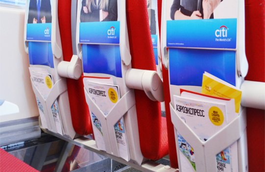 Выкладка рекламных материалов в Аэроэкспрессе на фото выше