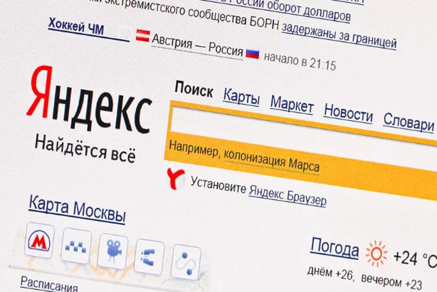 Пример баннера на главной странице в Яндексе представлен ниже: