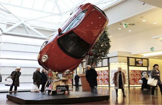 Пример рекламы в виде напольных конструкций в торговых центрах: